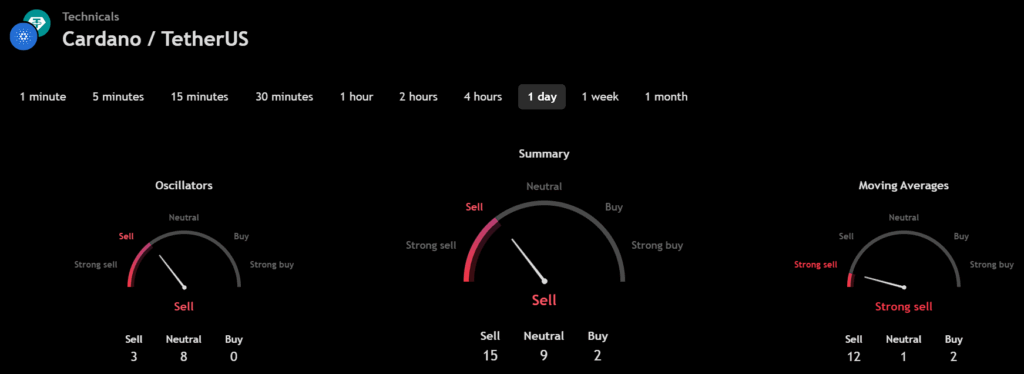From the readings on the chart above, we can make the following inferences regarding the price momentum of Cardano (ADA).