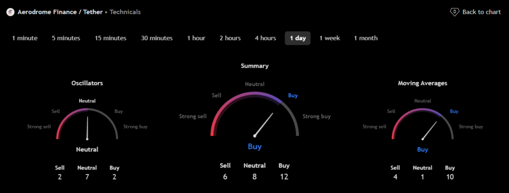 The technical analysis indicators such as Relative Volume (RVOL), Moving Average (MA), and Relative Strength Index (RSI) of Aerodrome Finance (AERO) are shown in the chart below.