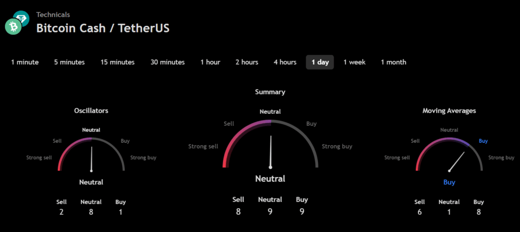 Bitcoin Cash 24H Technicals