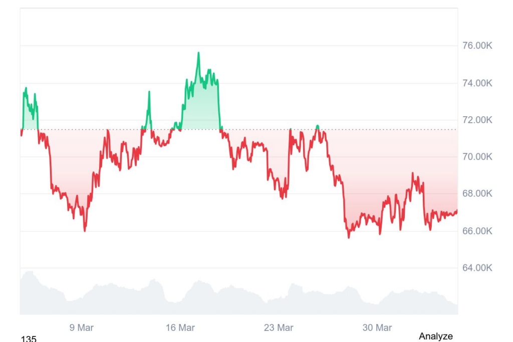 According to Michael van de Poppe’s Friday X post, the breakout will be heavier if it lasts longer. After hitting a one-year low of $60,000 on February 6, Bitcoin has been trading inside a tight band of $60,000 to $74,000 ever since. At the time of publishing, Bitcoin was trading at $67,153, reflecting an 8.29% decline over the last 30 days, as per CoinMarketCap.