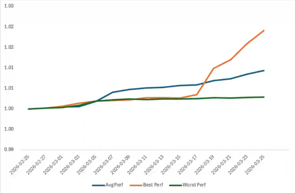 Bybit aligned fund assets as of February 26, 2026, and computed net asset values using the Time-Weighted Return approach to guarantee comparability across funds. To give a consistent measure of returns, performance outcomes were compared to financing arbitrage tactics.