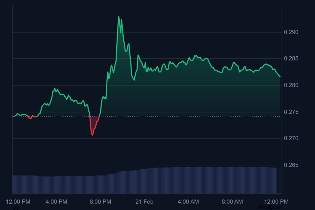 ADA’s lowest and highest trading level was observed at $0.2705 and $0.2929, respectively. If the recent bullish push gained more traction, the price action could see higher ranges. As of the current time, Cardano trades at $0.2829, with its daily trading volume having surged by over 42.87% to $494.67 million. Besides, the ADA market has seen a $927.53K liquidation.