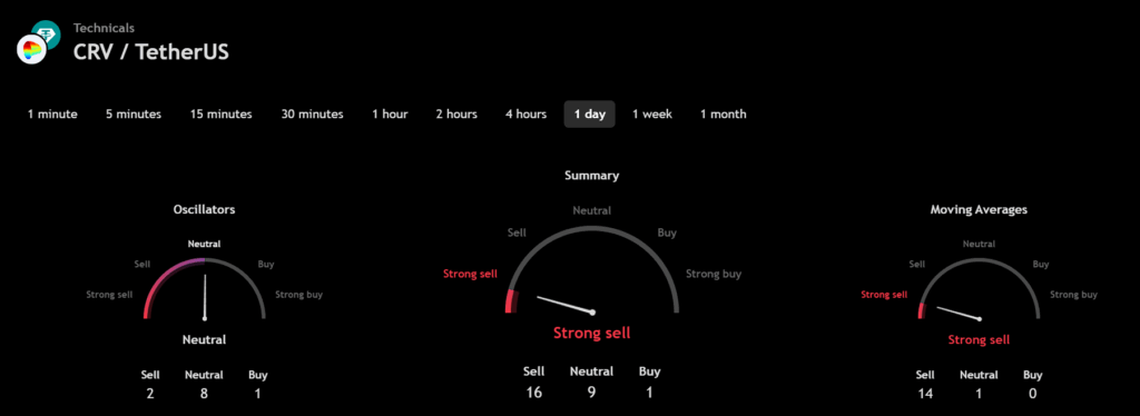 The technical analysis indicators such as Relative Volume (RVOL), Moving Average (MA), and Relative Strength Index (RSI) of Bitcoin (CRV) are shown in the chart below.