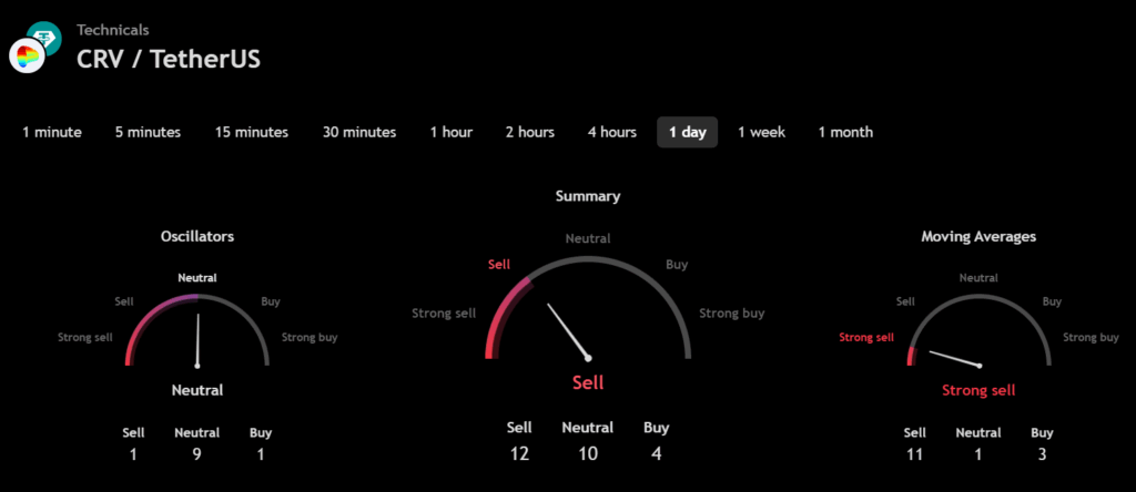 From the readings on the chart above, we can make the following inferences regarding the price momentum of Curve DAO Token (CRV).