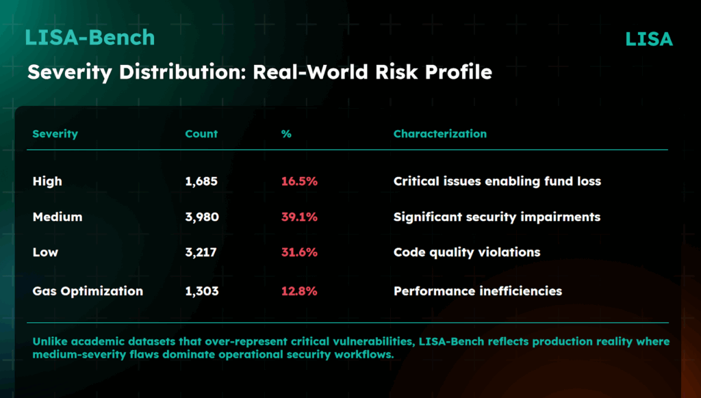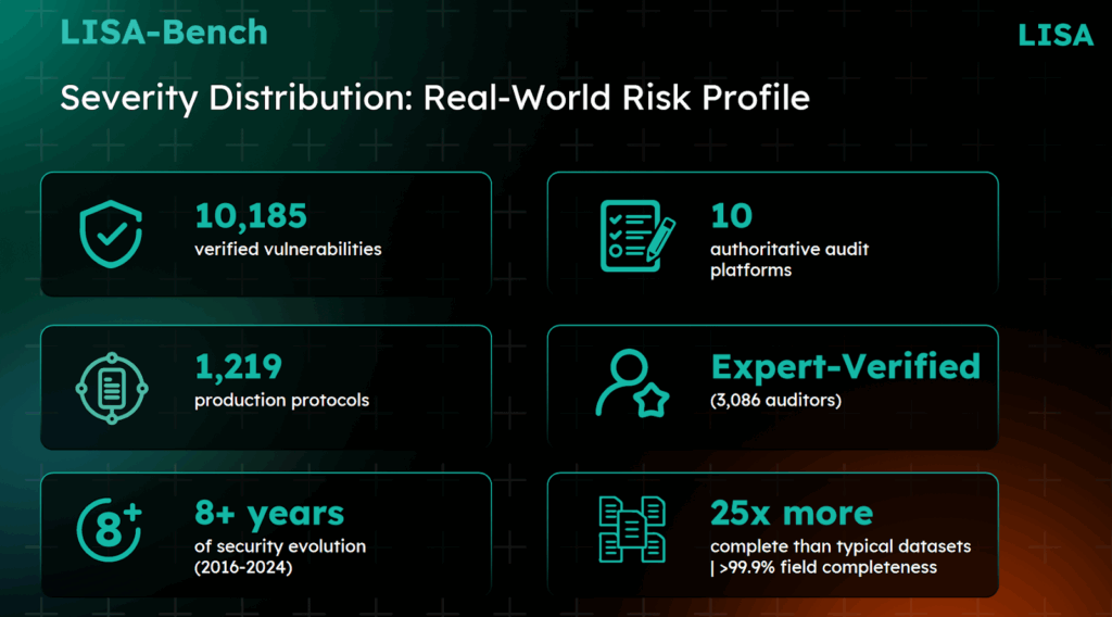 Eight years of data (2016-2024) covering 1,219 protocols enables something Anthropic’s attack models cannot: recognizing how vulnerabilities evolve. A 2024 exploit often has precedents in 2018 attacks following similar logic patterns. When new vulnerability classes emerge, models trained on LISA-Bench can predict variations before they’re exploited in the wild.