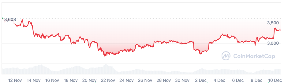 Ethereum is still one of the major Cryptos in the market and still dominates the Crypto market. Ethereum is currently trading at $3,328 with a huge market cap of $401.75 billion. Ethereum is structured under the major Resistance Zone and is struggling to regain its momentum. At the start of this month, Ethereum fell more than 7% in just 24 hours, causing panic among ETH investors. The Weak volatility, Low volume rallies, slow trader activity, and reduced Defi inflows make the ETH slow, and the ETH investors decide to switch their profits to Ozak AI.