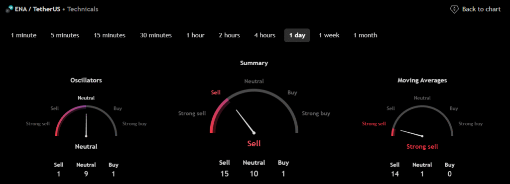 The technical analysis indicators such as Relative Volume (RVOL), Moving Average (MA), and Relative Strength Index (RSI) of Ethena (ENA) are shown in the chart below.