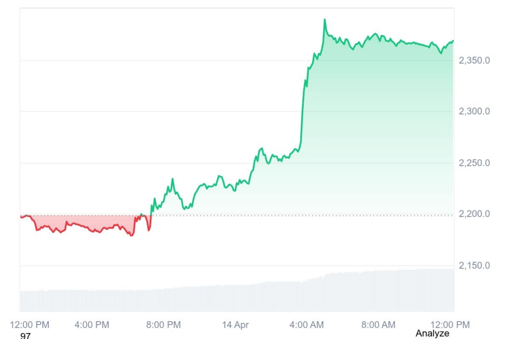 - At the time of writing, ETH is trading at $2,369, up 7.84% in the last 24 hours as per data from CMC.