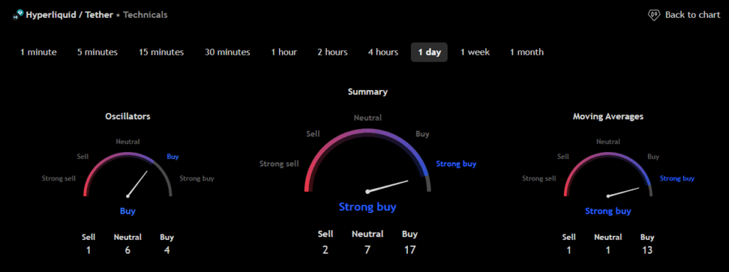 The technical analysis indicators such as Relative Volume (RVOL), Moving Average (MA), and Relative Strength Index (RSI) of Hyperliquid (HYPE) are shown in the chart below.
