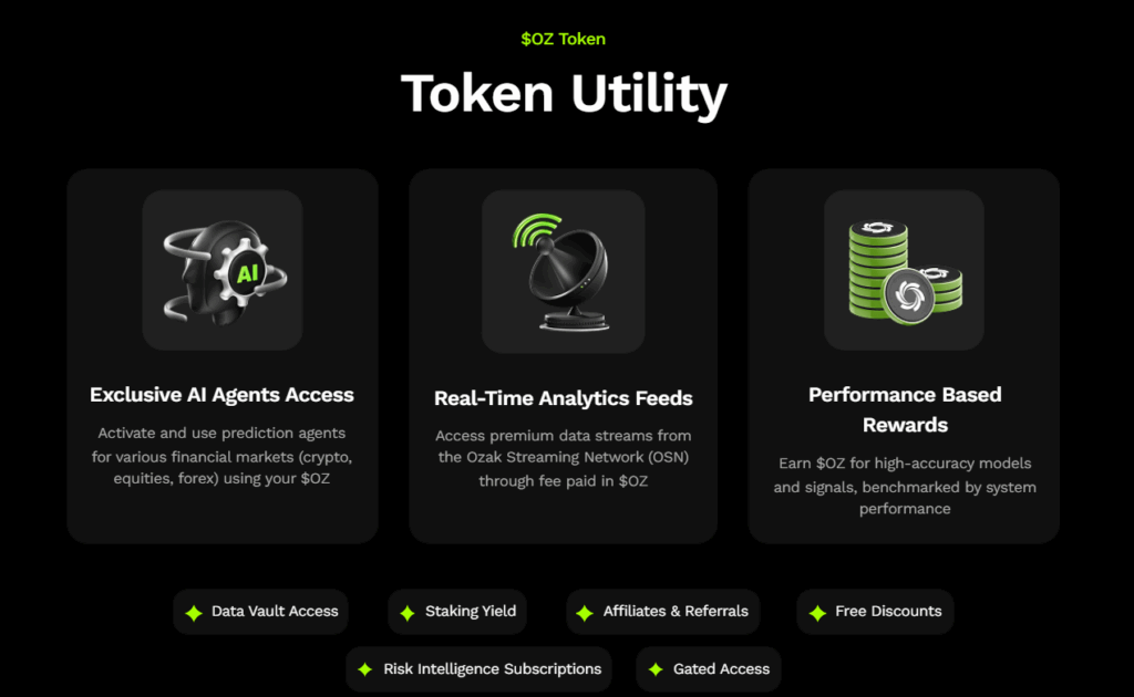 Then it offers an encrypted Data Vault for connecting wallets, exchanges, and social streams with a single access. These features are unlocked by the platform’s native token $OZ, and it has several other use cases.