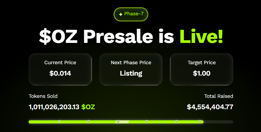 Ozak AI began its presale at $0.001 price in Phase 1, and the price increase in subsequent Phases, which showcases the strong investor accumulation. With this demand, Ozak AI currently stands in Phase 7, and each token is being sold at $0.014.