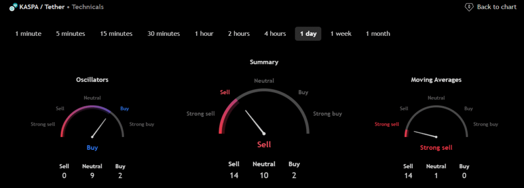 The technical analysis indicators such as Relative Volume (RVOL), Moving Average (MA), and Relative Strength Index (RSI) of Kaspa (KAS) are shown in the chart below.