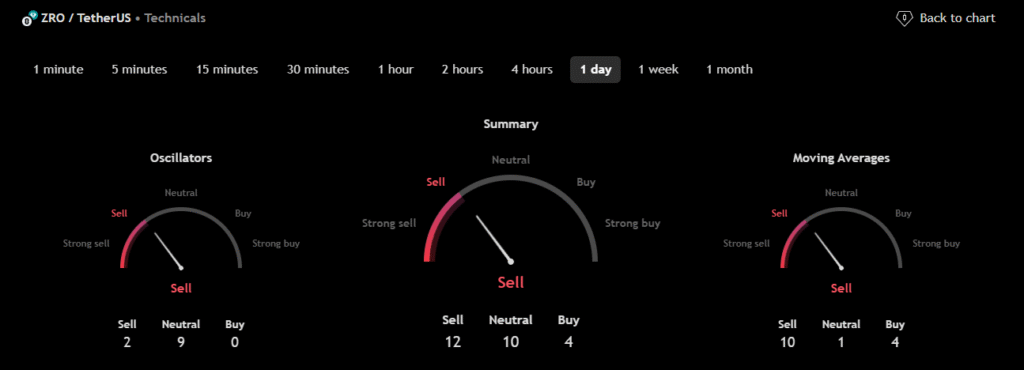 The technical analysis indicators such as Relative Volume (RVOL), Moving Average (MA), and Relative Strength Index (RSI) of LayerZero (ZRO) are shown in the chart below.