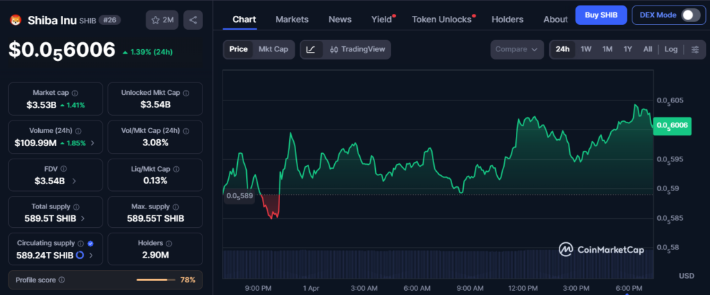 Shiba Inu is currently trading around the $0.0000058–$0.0000060 range, still sitting far below its all-time highs and struggling to regain strong bullish momentum.