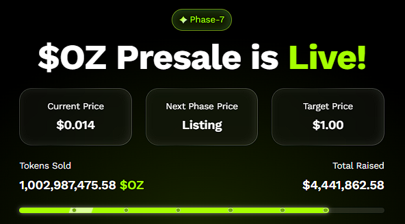 Currently in Stage 5 of its presale at simply $0.0014, Ozak AI has already raised over $4.4 million and sold 1 billion tokens, proving that investor sentiment is moving far from natural hype and towards projects with real global innovation and long-term scalability. Analysts now trust Ozak AI ought to deliver a 100× gain in the coming bull cycle, probably outperforming not only meme cash but even installed altcoins.