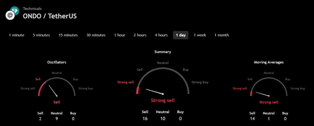 The technical analysis indicators such as Relative Volume (RVOL), Moving Average (MA), and Relative Strength Index (RSI) of Ondo (ONDO) are shown in the chart below.