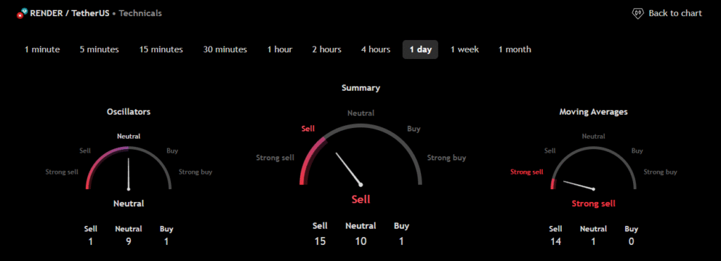 The technical analysis indicators such as Relative Volume (RVOL), Moving Average (MA), and Relative Strength Index (RSI) of Render (RENDER) are shown in the chart below.