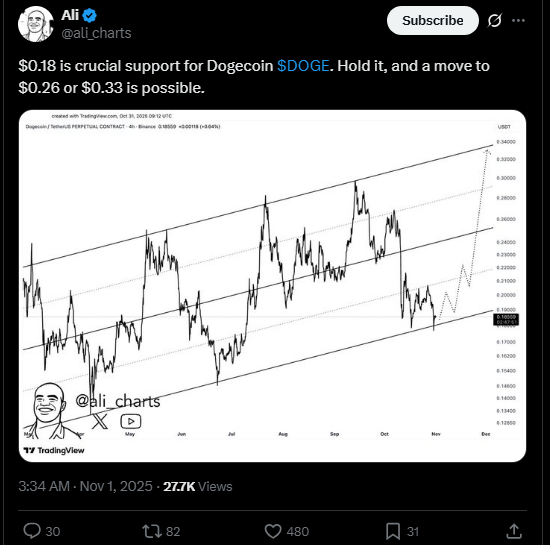 Recent 4-hour charts indicate that Dogecoin supports its critical support at $0.18, with upside targets of $0.26 or $0.33. The price has bounced back after a pullback and created an inverse head-and-shoulders on the RSI. This view on the rally is further supported by a golden cross confirmation.