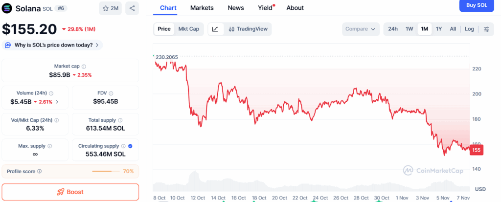 Crypto markets are in full swing again in 2025, with investors rotating into high-performance altcoins that combine scalability, innovation, and community growth. Solana (SOL) is one of the biggest names leading this charge, showing strong technical recovery and consistent developer activity. Trading around $155, Solana’s momentum has reignited bullish sentiment across the market.