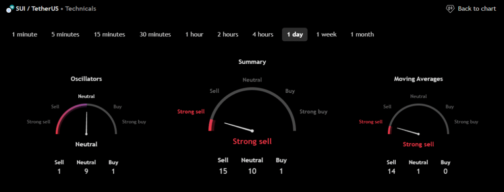 The technical analysis indicators, such as Relative Volume (RVOL), Moving Average (MA), and Relative Strength Index (RSI) of Sui (SUI) are shown in the chart below.