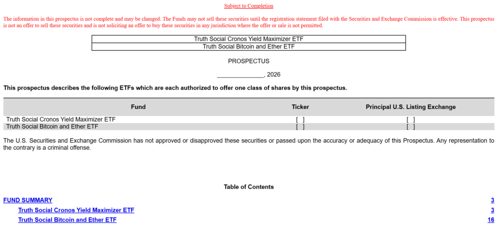 The filings reveal that there are specific funds that will capture exposure to Bitcoin and Ether. In addition to the prominent use case of the crypto ETF, the company has also filed for another fund called the Truth Social Cronos Yield Maximizer ETF. This second filing provides more insight into the company’s strategy for digital assets, which is more complex than the simple spot exposure. The filing outlines a yield-focused fund that is tied to the Cronos ecosystem. The fund will be reviewed according to the standard ETF review procedure. The sponsors must fulfill SEC and Nasdaq requirements before the launch. The filings provide information about risks associated with digital assets.